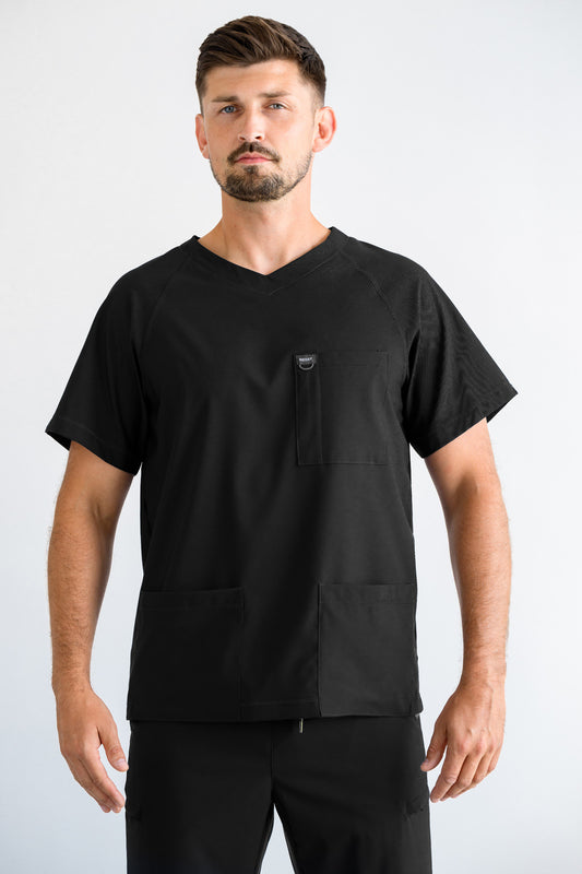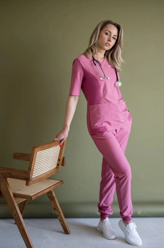 Dla lekarzy polecamy szczególnie scrubsy z lekkich, technicznych tkanin, które są oddychające, elastyczne i odporne na zagniecenia. W zestawie z naszą flagową marynarką Lab Coat, można zbudować spójny, profesjonalny wizerunek bez rezygnacji z wygody.